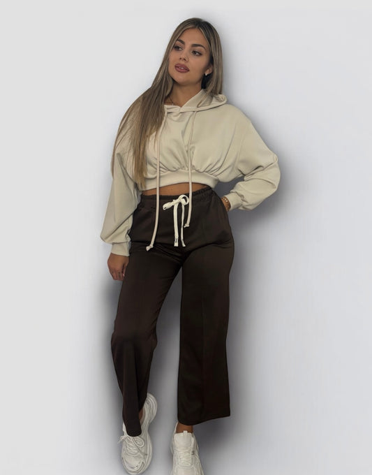 Sudadera crop beige